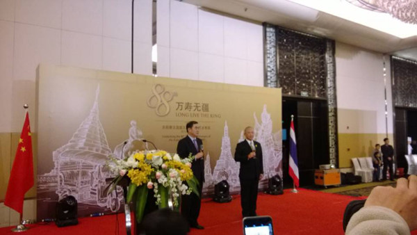 中国外交部亚洲司司长孔铉佑与醍乐堃•倪勇大使在开幕式上为中泰关系的健康发展及泰国国王的身体健康共同举杯