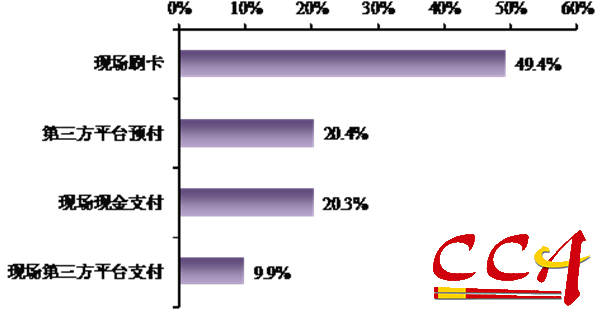 在支付方式上,现金支付的比例从39.3%大幅下降至20.3%,现场第三方平台支付、第三方平台预付和刷卡消费的比例都有不同程度提高(图6)。这反映出第三方网络平台的服务日趋完善,应用日益深入,极大地方便了消费者提前通过网络支付参与团购等活动,提高了消费者的使用意愿。支付宝钱包、微信钱包等电子支付方式功能日趋强大,在年轻人一代中深受欢迎,并有扩大使用群体的趋势。