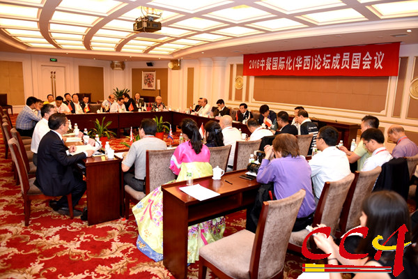 8月27日下午,“2016中餐国际化(华西)论坛”系列活动之一的“中餐国际化(华西)论坛成员国(地区)会议”在华西的地标建筑——龙希国际大酒店举办,来自世界26个国家和地区中餐组织的主席、副主席出席了会议。