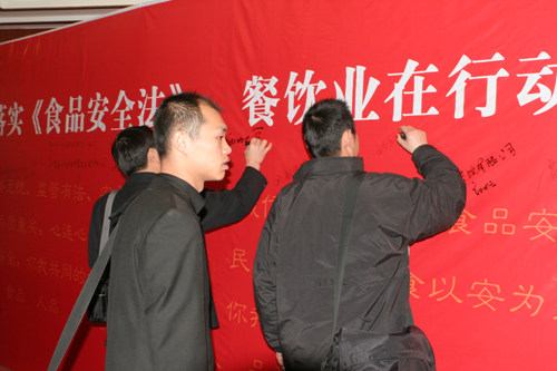 在启动仪式上,来自全国各地的200家大型骨干餐饮企业共同签署了“依法诚信经营,确保食品安全共同宣言”,推动广大餐饮企业遵纪守法,诚信经营,全面促进餐饮行业的和谐健康发展。有餐饮企业代表表示,食品安全是餐饮企业生存发展的首要条件,恪尽职守,从我做起,创造一个让消费者放心就餐的行业环境是餐饮企业义不容辞的责任和义务。