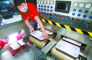 孟凯介绍,机器人炒菜的好处是降低用工成本,增强了中餐馆扩张复制能力。“盐、味精放了多少?翻炒多少时间?都有定数,再加入统一的秘制调料包。这就是标准化。”据介绍,高级厨师每人的年薪大多在二三十万元,如今采用烹饪机器人,一台机器只需要一次性投入十几万元,每月成本仅2000元左右。一台机器人能用好几年,而且能顶好几个人工。“这将对餐饮市场和餐饮业的经营方式产生直接影响。”营养餐的全部制作过程为:从京郊绿色及有机蔬菜基地大规模采购原料;中央厨房统一粗加工、调料包配制;半成品和成品经过统一调度,在指定时间由冷链运输车送到门店;机器人炒菜;熟制食品经包装后全部进行高温灭菌,在10万级净化间内,摄氏10℃环境下进行多种口味的组合搭配;出厂时,各种餐盒将被装入保鲜冷库内,车辆在行驶和开餐前,所有食品一直处于冷藏保鲜状态,以确保食品处于安全的温度环境中。