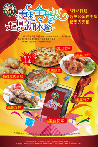 此次新品上市的口号是“美食全升级 超值新体验”。