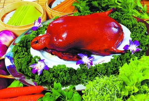 置身其中,没有人能够拒绝品尝烤鸭的冲动。便宜坊的焖炉烤鸭,制作工艺讲究,鸭坯制作经过“脱酸、脱脂、脱火、脱腥和纯净水加工”,确保食品安全;因烤制过程中鸭子“不见明火”,被称为:环保型烤鸭。出炉烤鸭味道独特:外皮油酥,肉鲜嫩,肥而不腻,保留了焖炉烤鸭鲜嫩多汁的特点。近年来,便宜坊先后推出了“花香酥”和“蔬香酥”系列烤鸭,当淡淡的花香和蔬菜的清香在鸭肉的香味中若隐若现时,领略到的则是非同一般的活色生香。