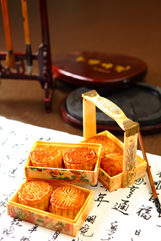 相传,明末清初跑到昆明避难的永历皇帝,终日愁眉不展,茶饭不思。一位御厨情急之下,别出心裁地选用云南的火腿精肉,切成碎丁,混以蜂蜜、精糖包馅,蒸制点心奉上,称之为“云腿包子”。这香浓味醇,甜咸适宜的点心让皇上品尝后龙颜大悦,连声称赞,从此被列为御膳中的一道应时名点,后传入民间,并逐渐由蒸制改为烘烤,由包子形状改为圆饼形状,不断演绎成当今声名鹊起的——“云南滇式月饼”。