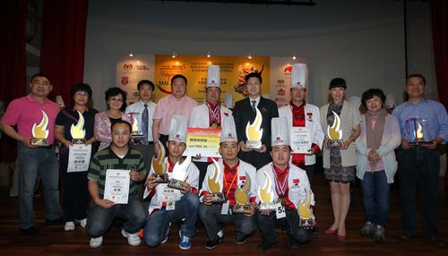 经过三天公平、公正的评判和紧张比赛,最终阿五美食厨师陈铁林技压群雄,所制作的菜品“彩蝶迎春”荣获“2011大马国际精厨争霸赛”最高荣誉奖特金奖第一名,张永跃制作的菜品“金猴戏牡丹”、赵耀制作的“芥末虾球”荣获了大赛金奖,河南餐饮代表团也被评为“最佳海外代表团”,为中国赢得了荣誉。