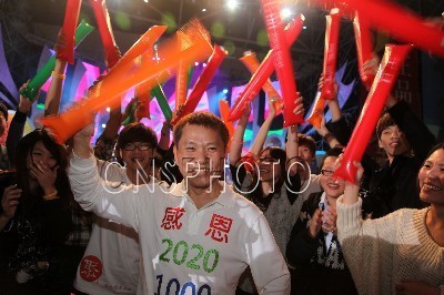 12月6日,台湾餐饮业龙头王品集团在台北南港展览馆,以765桌、8000人聚餐联欢的方式,拉开风靡宝岛的年终“尾牙季”序幕。图为该集团董事长戴胜益与员工共舞,庆祝公司在海峡两岸的业绩“翻红”。