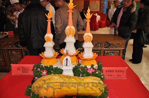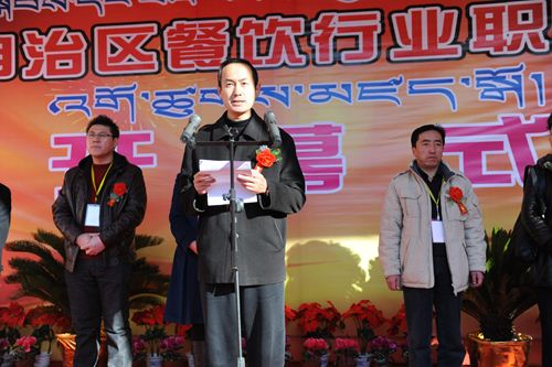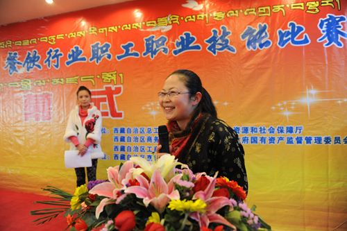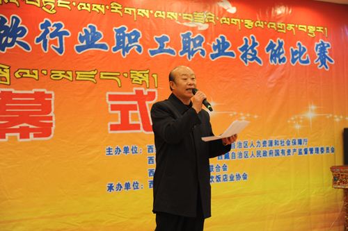 正值中国共产党西藏自治区第八次代表大会胜利闭幕之际,经过历时3个月的筹备、选拔,由西藏自治区总工会、区人力资源和社会保障厅、区商务厅、区国资委、区工商联联合举办,自治区烹饪餐饮饭店业协会承办的“首届西藏自治区餐饮行业职工职业技能比赛”决赛今日在西藏大厦隆重举行。出席开幕式的领导有:自治区总工会边杰光副主席,自治区人力资源和社会保障厅就业促进处李宝荣副处长,自治区商务厅贸易促进处德吉卓嘎副处长,自治区国资委党群处黄可卿处长,自治区总商会副会长、自治区烹饪餐饮饭店业协会会长褚立群,中国烹饪大师唐习鹏先生。