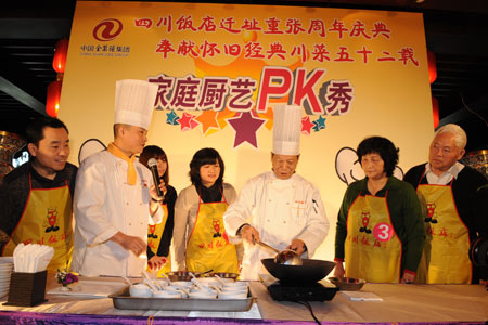 7日上午,一场精彩的“家庭厨艺PK秀”在四川饭店展开了角逐,为这家久负盛名的川菜老字号重张庆典增添了喜庆色彩。