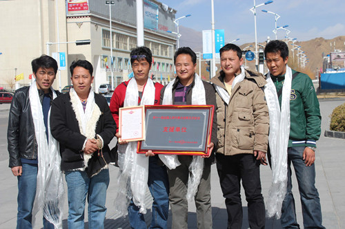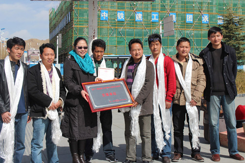 3月19日下午,西藏自治区烹饪餐饮饭店业协会会长褚立群、副秘书长沈斌前往火车站迎接参加两会接待任务的藏菜厨师顺利完成任务回到拉萨。领队普布扎西手捧着第十一届全国人民代表大会第五次会议总务组授予的“支援单位”的奖牌,精神抖擞、笑容满面的回来了,会长褚立群、副秘书长沈斌为载誉归来他们献上了祝福的哈达。