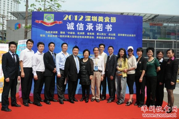 深圳消费促进月开展至4月14日下午,由深圳市经济贸易和信息化委员会主办,深圳市饮食服务行业协会承办的“2012深圳美食节”在深圳市南山区海岸城海德广场拉开了第二期活动帷幕,深圳市经济贸易和信息化委员会有关领导,深圳饮食服务行业协会会长邹洪女士,及其他领导嘉宾出席了这次活动仪式。参加这次活动共有三十几家餐饮企业。围绕着“守诚信、促消费、倡低碳、惠民生”的主题,各参与商家郑重的在承诺书上签字。