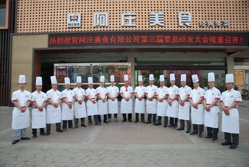 阿庄美食由中国烹饪大师王铁庄先生在2007年创办于河南郑州市.自己创办以来,一直以复兴豫菜为己任,立足市场需求,推陈出新,全力打造新概念豫菜。阿庄美食本着“价公道,菜实大,味道赢信誉,守信待来宾”的经营理念,遵循着“吃亏不亏,惜福得福”的企业价值观。用人品做生意,在菜品上下功夫.研发出阿庄四大特色菜:经典红烧大鲤鱼,八大碗里藏神奇,黄瓜油条鲜嫩脆,美味阿庄地锅鸡.