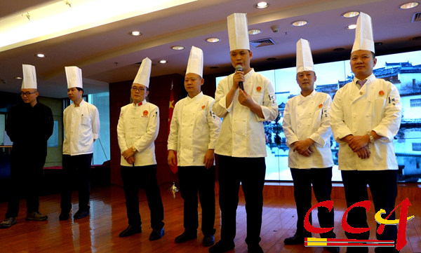 边疆副会长向来宾们介绍了今天午宴——中国八大菜系之一的徽菜历史和发展。他说,安徽悠久的历史与丰富的文化造成了徽菜这一独具特色的中国主流大众化菜系,对中国南北菜系具有广泛的影响。我想,出席本次午宴的来宾是倍有口福的,因为徽菜美食文化大规模的海外展演,这还是首次。今天,来自中国徽菜故乡的名厨团队为各位嘉宾呈献最纯正、可口的徽菜。这些菜品融合了中国烹饪传统经典也吸纳了当今时尚元素,相信一定会给大家带来一次中国美食的文化享受。