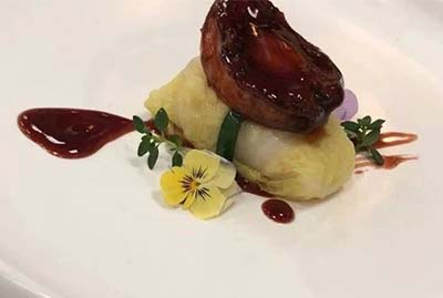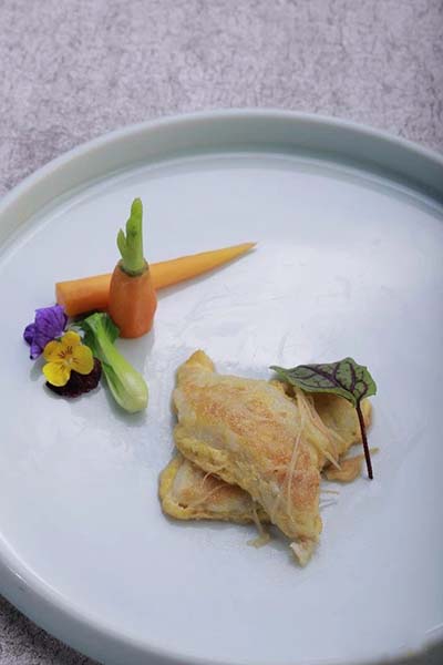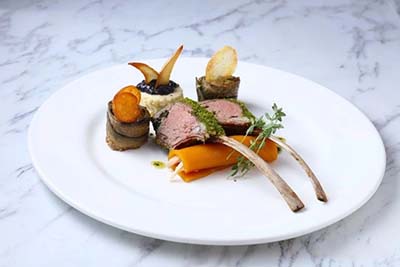 原料:羊排、迷迭香、百里香、薄荷、芒果汁、阿拉斯加蟹肉、牛肝菌、水牛芝士、玉米粉、牛奶、黄油、巴马辰芝士、长茄子、面包糠、番茄、蒜、盐、琼脂、鸡蛋、面粉、芹菜、橄榄