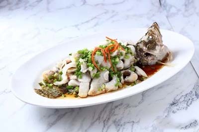 主料:大黄鱼500g 辅料:玉兰片10g、火腿10g、水发木耳10g、油菜王2棵、鸡蛋2个、葱姜各5g、清汤150g、红线酸模两片、三色堇两朵