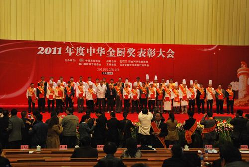 10月19日,2011年度中华金厨奖在昆明揭晓,来自国内31个省市自治区的234名厨界精英喜获殊荣。云南省商务厅王开良副厅长、昆明市李喜副市长、世界厨师联合会主席盖德曼德森、中国烹饪协会特邀顾问沈思明、顾问马凤岐、李有堂,中国烹饪协会副会长兼秘书长冯恩援等领导出席了表彰大会。