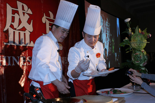 本次交流大会以“魅力中餐、文化盛宴”为主题,四位来自中国的顶级烹饪大师,为交流大会献上了精心准备的菜肴并做了精彩的演示和讲解。中国第一位在奥林匹克世界烹饪大赛中获得金奖的厨届泰斗级大师李启贵,演示了被誉为“天下第一美味”的“中华八珍宝鼎”和以刀工见长的“清烹牛柳丝”。来自中华老字号全聚德的苏建国大厨,演示了以多种加工工艺和拼盘手法展现出生动的花鸟鱼虫、飞禽走兽形态的冷拼“迎宾花篮”。樊胜武大师演示了造型美观、口感爽滑、清香利口的“五彩桂鱼卷”。擅长将传统技法和现代饮食潮流相演绎、多次在北美地区进行表演的吴永东大师演示了一道精致的面点——“丰收果”。