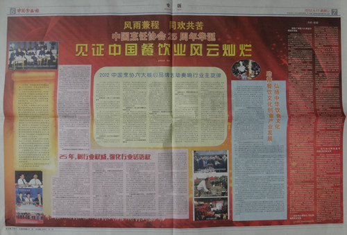 2012年是中国烹饪协会成立25周年,为了庆祝中国餐饮行业这一盛事,与中国烹饪协会保持多年友好合作关系的《中国食品报》刊发了专版文章,回顾了中国烹饪协会25年来伴随中国餐饮业发展的风云灿烂。