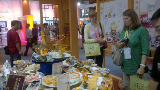 外宾围观中国餐饮展示馆展台 惊叹精美中餐菜点