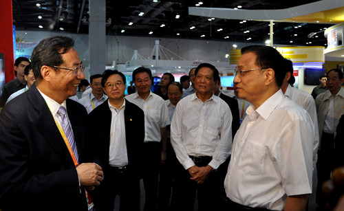 李克强副总理再次来到中国餐饮展示馆时,问询了餐饮老字号的发展情况并表示餐饮业关系国计民生,老百姓都离不开吃这个话题。冯会长代表协会对李克强副总理关心和支持餐饮业表示感谢,他向总理介绍了目前中国餐饮业突破2万亿元收入的运营情况。在参观完联通展馆之后,李克强副总理第三次来到中国餐饮展示馆,这一次,李克强副总理特别强调了食品安全问题,他说,食品安全工作除了靠政府,还得靠行业组织一起抓,靠全社会的关心和支持,要把食品安全放在重中之重。李副总理指出,服务业大多是实体经济,具有带动就业、降低消耗和污染、促进创新等优势,是国家竞争力的重要组成部分。目前,我国服务业比重偏低,但发展潜力巨大、前景广阔。当前,在扩大内需、拓展国际市场中,要把加快发展服务业和服务贸易作为重要内容,并通过提升服务业比重和水平,促进经济结构优化和发展方式的转变。