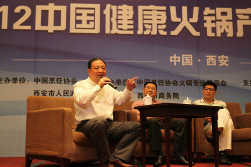 6月29日,由中国烹饪协会、西安市人民政府主办,中国烹饪协会火锅专委会承办的2012中国健康火锅产业发展大会在西安建国饭店隆重召开!来自全国22个省、自治区、直辖市的120家品牌企业的200余名火锅产业链精英齐聚西安,宣贯国家标准,分享企业成功经验,共同探讨中国火锅产业的发展走向与未来战略。围绕创新发展、品牌提升、渠道合作等议题,展开了充分的交流。中国烹饪协会会长苏秋成、西安市人民政府副秘书长陈松林、西安市商务局局长吕恒军、中国烹饪协会顾问、陕西省烹饪协会会长李有堂、中国烹饪协会副会长刘秀军、汤庆顺、王一萌、李海波等领导出席大会。