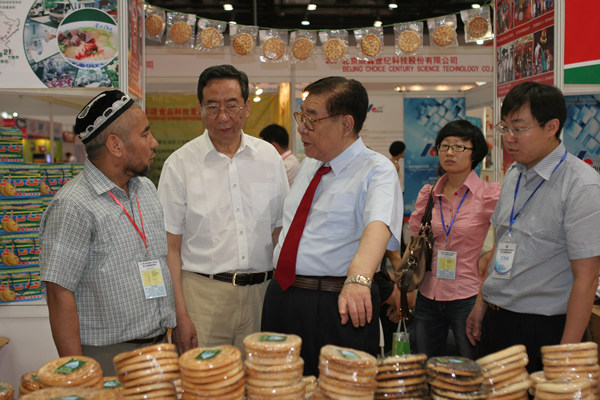 当日,新疆自治区商务厅厅长、促进新疆特色餐饮发展工作指导小组副组长和宜明厅长亲临现场,向观展的中外客商介绍并展示了丰富多彩的新疆特色餐饮文化和独特的民族风情。据和厅长介绍,本次参展的上千种餐饮食品具有浓厚的新疆特色,如馕、烤包子、烤羊肉串、抓饭;新疆素有瓜果之乡的美称,水果有哈密瓜、葡萄、香梨、杏、石榴等;干果有葡萄干、巴旦木、无花果、杏干、大杏仁等,均享有美誉。