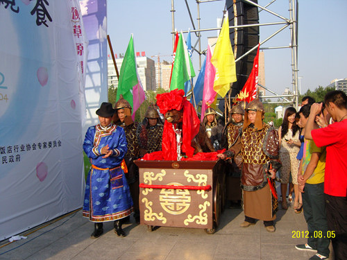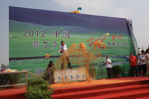 8月4日上午,2012中国·鄂尔多斯首届黄河美食文化节在鄂尔多斯市东胜区的青铜器文化广场正式拉开帷幕。本届黄河美食文化节由中国烹饪协会、内蒙古自治区商务厅、自治区餐饮与饭店行业协会、鄂尔多斯市人民政府共同主办,内蒙古餐饮与饭店行业协会专家委员会、鄂尔多斯市东胜区人民政府、鄂尔多斯市商务局承办。
