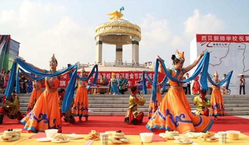 8月5日,黄河颂·草原情饮食文化展示在青铜器文化广场隆重举行