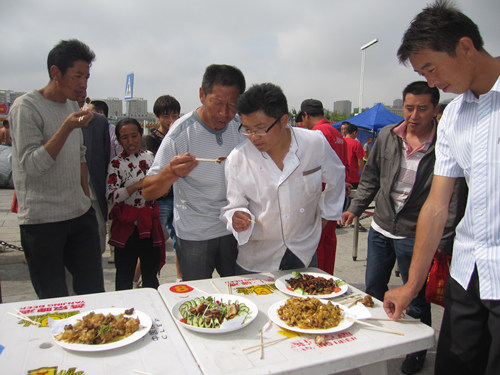 8月6日在东胜区青铜广场举办“百姓厨艺达人秀”吸引了广场游客浓厚的兴趣。参与比赛的家庭有18家,现场观众积极参与互动,评选出来自民间美食达人。