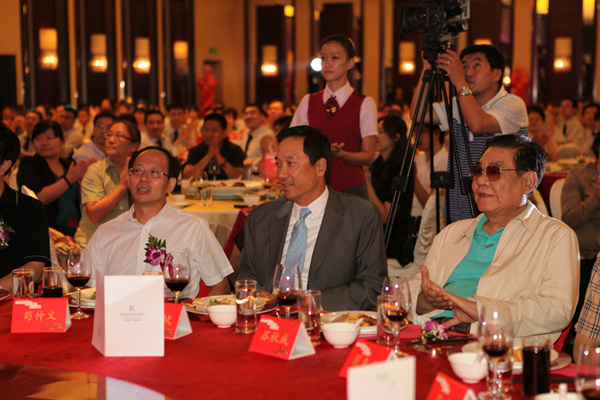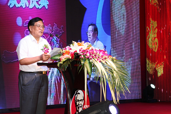 中国烹饪协会会长苏秋成与百胜餐饮集团中国事业部主席苏敬轼、北京市人民政府副市长苟仲文一起出席中国肯德基25周年庆典活动