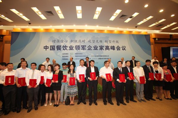 获得2012全国餐饮业节能低碳先进单位荣誉称号的企业合影