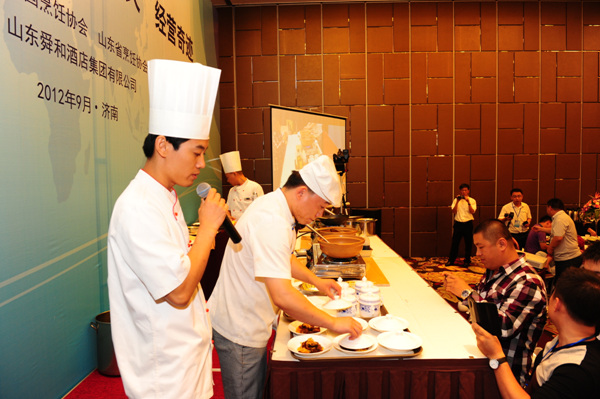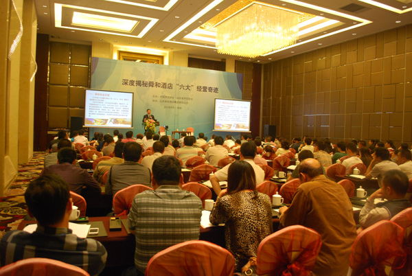 培训交流期间,任兴本董事长、王道同副总经理等舜和的中高层经营管理人员分别就企业的核心竞争力、“五个式”的服务理念、异化经营与细节管理的理念、节能举措及降低营运成本经验以及招人、用人、留人的有效措施等,与参加培训的学员进行了交流。学员并分组对舜和国际酒店的停车场,礼警指挥台、酒店各层餐饮包房、酒店客房、大宴会厅、员工宿舍、厨房、工程部等进行了全方位考察。针对当前行业普遍面临的“四高一低”状况,中国烹饪协会副秘书长桑建、山东省烹饪协会副会长李光壁也分别向学员们介绍了国家相关政府部门和中国烹饪协会等行业组织采取的积极措施和应对策略,并希望参会学员通过揭秘舜和酒店活动,可以寻找出适合各自企业节能减排、降低企业各项费用的新思路。学员们纷纷表示,此次培训中舜和酒店表现出了他们的坦诚,把酒店运行过程中曾面临的难点、如何度过难关的方法毫无保留地与同行们进行分享,使大家深受启发,也更坚定了在逆境中谋求发展的信心。
