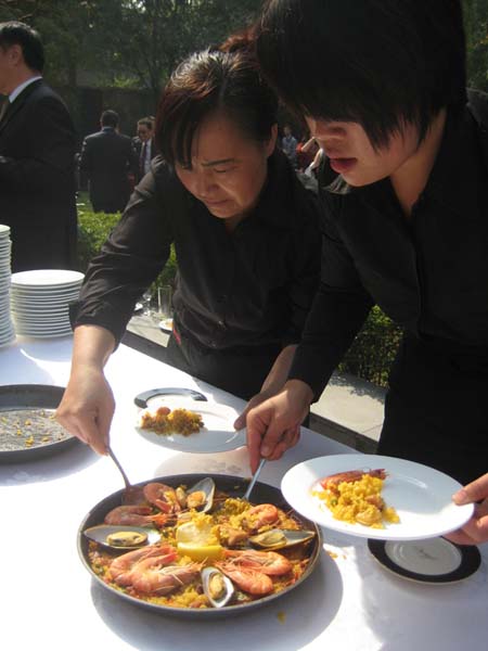 西班牙厨师用著名的海鲜饭招待各国来宾