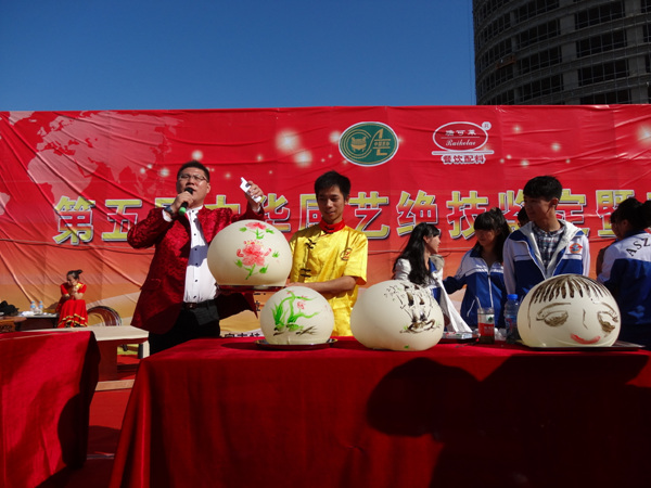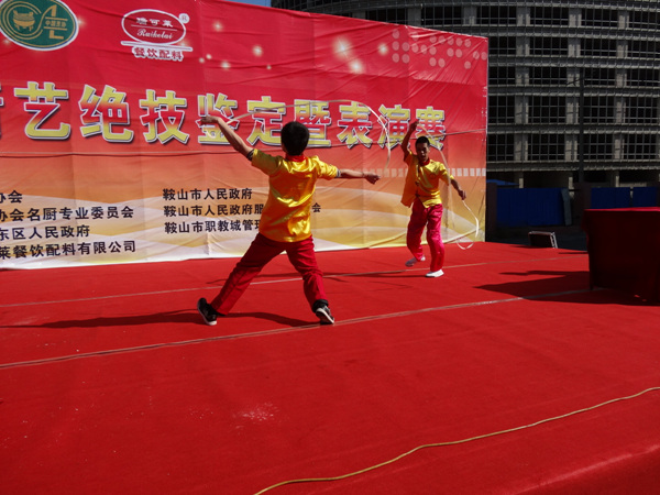 中华厨艺绝技鉴定暨表演赛两年举办一届,以充分的挖掘、展示、整合中华厨艺绝技绝活,炼就更深、更高、更强的烹饪技术基本功底为目的。此次中华厨艺绝技鉴定暨表演赛邀请了来自全国的五位评委对厨艺绝技高手们带来的冰雕表演(天鹅)、花式舞面、脚踩钢刀吹面球剁排骨、糖艺(寿桃)、云梯勾刀面、快速刀功、大刀面、七仙女下凡、长寿一根面、单手雕花、糖艺(绽放)、轮滑花样烩面、面球作画、晃管剔尖、面塑、高跷花样呼啦圈剪刀面、神奇幸运球、花式铁板烧等项目进行了认真、公平、公正、公开的鉴定。此外,中华厨艺绝技表演团的演示员们也将来到鉴定现场,亲自展示双人花样烩面、百米一根面、独轮车头顶刀削面、圣祖金丝狮王争霸 、琼脂雕(雄起)、踏板拨鱼、文思豆腐、高跷花样呼啦圈剪刀面等曾经在央视等各大电视节目、海内外大型活动中征服了亿万观众的绝技演示项目为活动助兴添彩,一时间,精、妙、绝的厨艺绝技表演将鞍山市职教城打造成了一个奢华的梦幻厨艺秀场,吸引了众多观众的驻足观看和媒体的争相拍照。现场人头攒动,热闹非凡。互动环节,观众更是踊跃上台,在演示员们的指点下,纷纷一试身手。