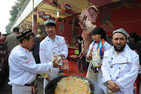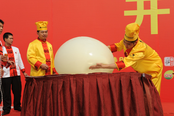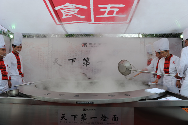 阿五美食展示出冲刺吉尼斯世界纪录的天下第一烩面成为展会亮点