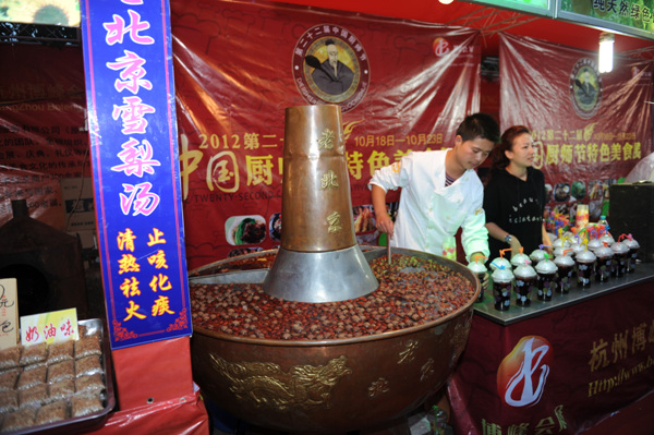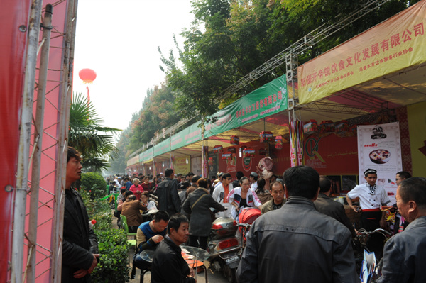 人流涌动,喧闹异常,美味飘香的黄金美食街是广大游客和市民对本次参展活动的评价。对于以小吃闻名的开封而言,美食街在开封有很多,但是一次就能在一条街上同时品尝到来自全国20多个省、市的北京烤鸭、蒙古烤全羊、长沙臭豆腐、广东水晶鲜虾饺、洪七公叫花鸡等不同特色的美食,开封市民大呼过瘾,大饱口福之余更有市民建议这条街永久留在开封,为开封旅游名城增光添彩。