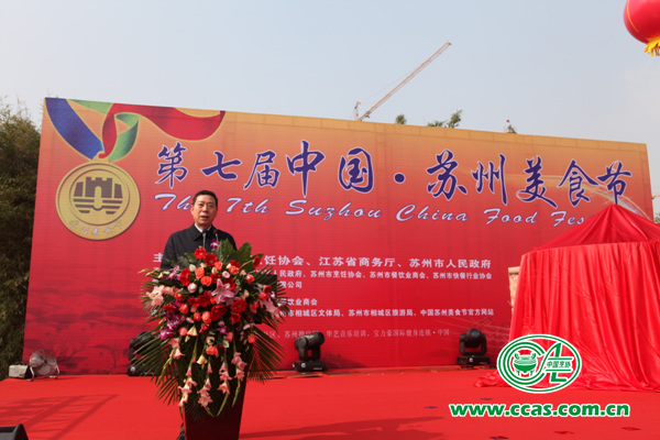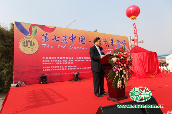 自10月31日—11月4日,由中国烹饪协会、江苏省商务厅、苏州市人民政府共同主办的第七届中国•苏州美食节于今日在苏州隆重开幕。本次活动是中国烹饪协会与苏州市人民政府长期合作项目,被列为国家商务部重点支持的大型消费促进活动。商务部特派员周若军,中国烹饪协会副会长李亚光,江苏省商务厅副厅长于震,苏州市委常委、常务副市长周伟强一起出席了开幕式及观展活动。