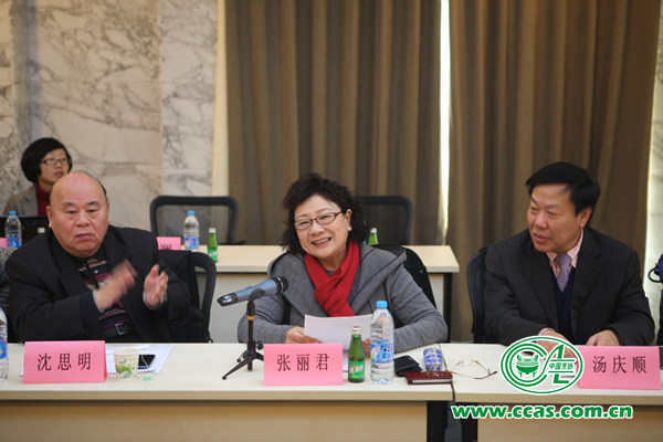 从左至右:审定专家组副组长沈思明、组长张丽君、副组长汤庆顺