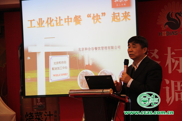 中国烹饪协会常务理事、山东省烹饪协会常务副会长兼秘书长李光壁先生在活动启动仪式上致辞,他对中央厨房建设的发展方向以及复合调味料在中餐标准化中的应用提出了中肯的建议和殷切的期望。