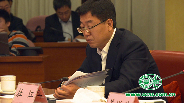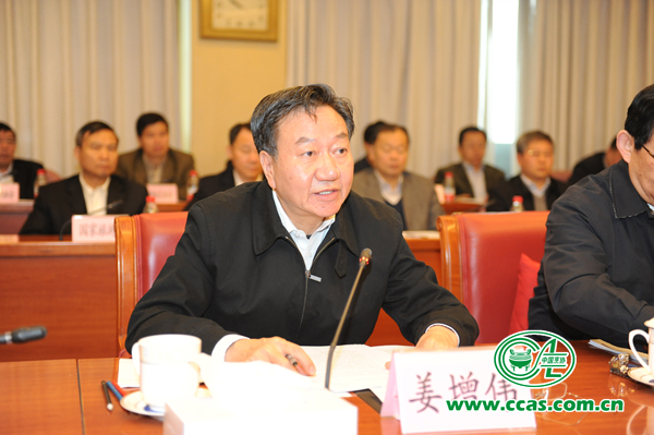 冯恩援常务副会长兼秘书长向姜增伟副部长介绍协会在倡导餐饮业厉行节约方面所做的工作