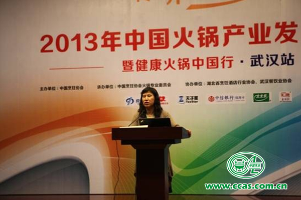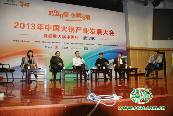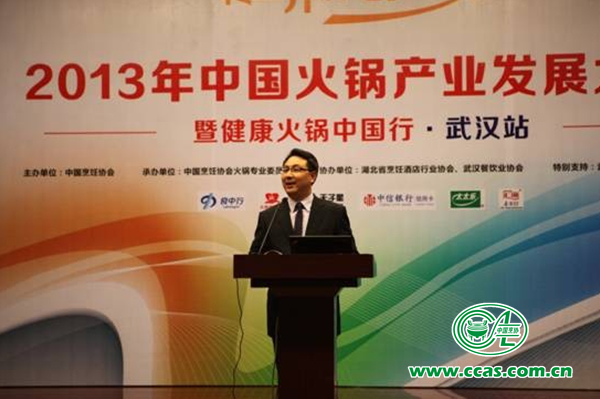 由中国烹饪协会主办,中国烹协火锅专委会承办的2013年中国火锅产业发展大会在武汉科技会展中心隆重召开!中国烹饪协会常务副会长兼秘书长冯恩援、原武汉市人大常委会副主任吴玉梅、武汉市市商务局副局长孙朝忠、中国烹饪协会副会长刘秀军、汤庆顺、龚守相、李海波等领导及来自全国24个省市的300余名火锅企业代表出席大会。