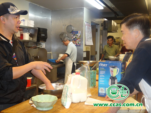 连庚明大师制作的姜撞奶方法让餐馆厨师很受启发,也吸引了食客到后厨观摩品尝