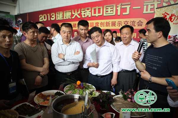 为了引导广大火锅企业开辟新的服务模式,提升服务水平,交流菜品出品技艺,提升菜品出品质量,从而更好的服务于广大消费者,给他们带来新的就餐体验。由中国烹饪协会主办,火锅专委会承办,太太乐冠名,东来顺、一尊皇牛、黄记煌、海底捞、上鱼舫、田源鸡、捞捞福、渝尚煌、一品鲜、靓健等火锅企业共同支持的2013健康火锅筵席展示交流会于4月17日在武汉召开。鸟鱼花香火锅筵、五色养生筵、荆楚四季丰收筵……10款不同风格不同文化背景各具特色的火锅筵席在现场加工展示。