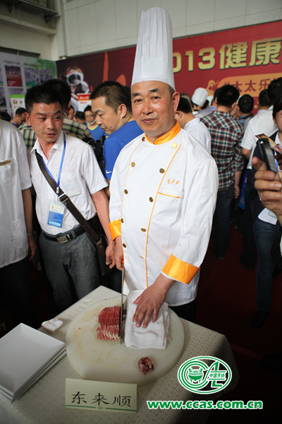 东来顺国家级非物质文化遗产传人陈立新现场表演手切羊肉