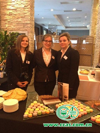 在颁奖活动结束后的鸡尾酒会上,主办方准备了中法各色美食,会场洋溢着浓郁的中法餐饮文化氛围。40余名克里西勒内-奥弗莱酒店饭店管理学院的法国学生形成了一道亮丽的风景,他们正在北京雅高集团旗下的5家酒店、万豪酒店、东方饭店、皇家驿站等十余家酒店进行为期4个月的实习,为这次鸡尾酒会提供了专业的餐饮服务。