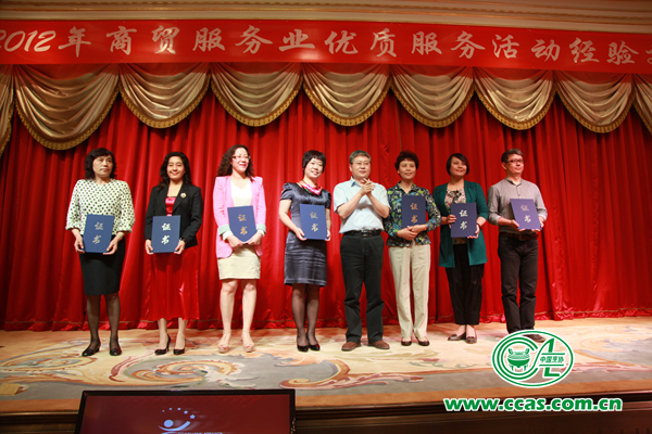 2012年全国商贸服务业优质服务活动经验交流会5月14日在京召开,商务部服务贸易司司长周柳军、中国商业联合会会长张志刚等领导同志参加会议并讲话。中国烹饪协会会长苏秋成出席了交流会。受到表彰的“优质服务品牌”的企业代表、优质服务明星和优秀组织奖的行业协会代表以及近30家媒体记者等200多人参加了会议。由各地商贸服务系统和中国烹饪协会推荐的餐饮行业组织、企业和个人代表出席了交流会,上海丰收日大酒楼驻店总经理张赛萍代表餐饮业获奖者登台领奖。