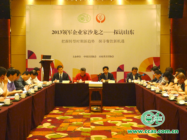 在此背景下,由中国烹饪协会、山东省烹饪行业协会联合主办的“领军企业家沙龙之——探访山东”活动于2013年5月13日至14日在舜和国际酒店举办。中国烹饪协会副会长刘秀军、山东省烹饪行业协会常务副会长兼秘书长李光璧、中国烹饪协会职业经理人专委会主任王金城与来自全国的知名餐饮企业代表汇聚一堂,以“把握转型时期新趋势、探寻餐饮新机遇”为主题,积极交流、探讨,对转型路径进行了深度的思考与审视。