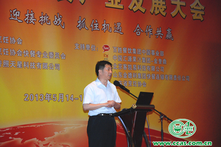2013年5月14-16日,由中国烹饪协会主办、中国烹协快餐专业委员会承办,山东省烹饪协会支持、北京普照天星科技有限公司协办的大众美食促销季之2013中国快餐产业发展大会在济南舜和国际大酒店召开。大会以“转型升级、迎接挑战,抓住机遇、合作共赢”为主题,并得到了百胜餐饮集团中国事业部、中国汇源果汁集团金奎鼎、北京客凯易科技有限公司、山东金德利集团快餐连锁有限责任公司的大力支持。中国烹饪协会刘秀军副会长和山东省烹饪协会李光璧常务副会长兼秘书长出席了大会并致辞。