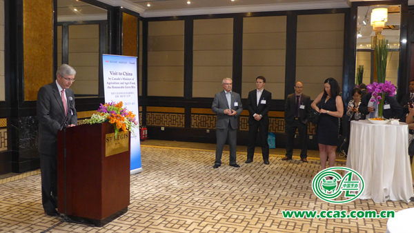 加拿大驻华大使赵朴在致辞中表示,中加两国经贸关系发展潜力巨大,发展势头强劲,中加两国在农产品方面的合作也步入了新的阶段,此次农业及农业食品部部长访华与中国政府达成了相关协议,中国政府同意放开加拿大牛肉类产品的进口,将来还会陆续与加拿大政府就樱桃等其它农产品的进口进行协商,相信中加在农产品方面的合作会不断取得新的成果。
