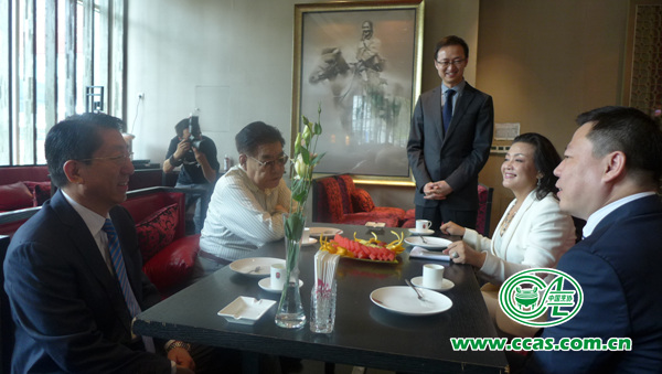 发布会前,苏会长与张兰就餐饮业的转型升级交换了意见