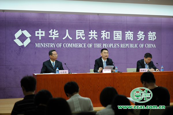 商务部新闻发言人姚坚(左二)、商务部服贸司司长周柳军(右一)分别介绍了2012年餐饮及居民服务行业运行情况和商务部推动餐饮和居民服务业发展的主要做法